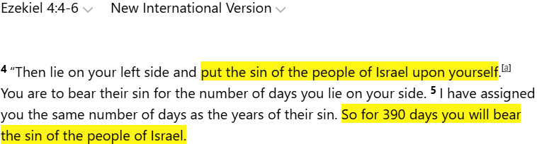 Also, Ezekiel is said to “bear the sins” of Israel! Ezekiel definitely didn’t die for anyone’s sins, rather this was a symbolic gesture to represent Israel’s punishment.