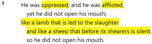 Verse 7 also describes righteous Israel as a “lamb led to the slaughter” & a “sheep” silent before its shearers, low and behold, that is the exact description we get of Israel in exile! for example in Jeremiah 11:19 says: