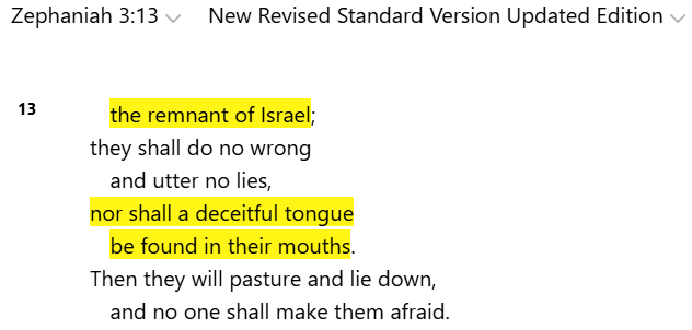 So in summary, this verse contrasts the deceitful wicked/rich with poor/righteous Israel that has no deceit in it’s mouth! The missionary here will say something like “Well Israel has a history of deceit! It can’t be Israel” This is quite ironic because the Tanakh quite literally describes righteous Israel having NO deceit in it’s mouth.